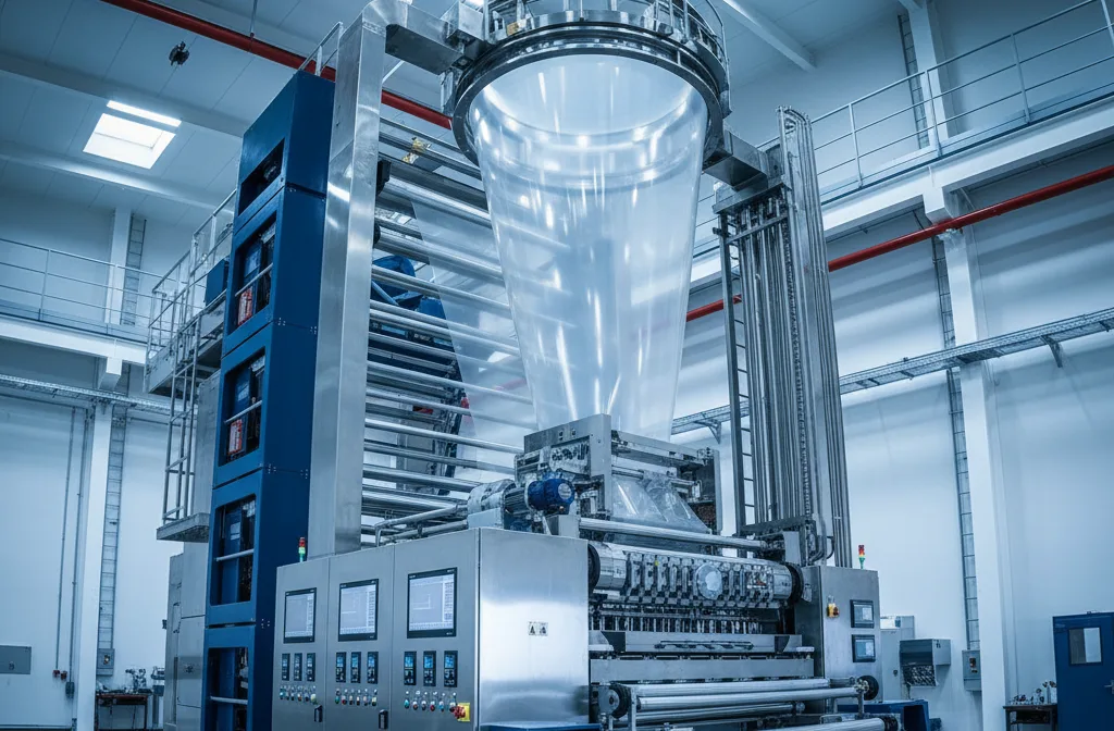 تولید فیلمهای شفاف و بهداشتی (برای کیسه فریزر) یا فیلمهای رنگی و ضخیم (برای کیسه زباله). کنترل دقیق ضخامت در این نوع تولید اهمیت بالایی دارد.